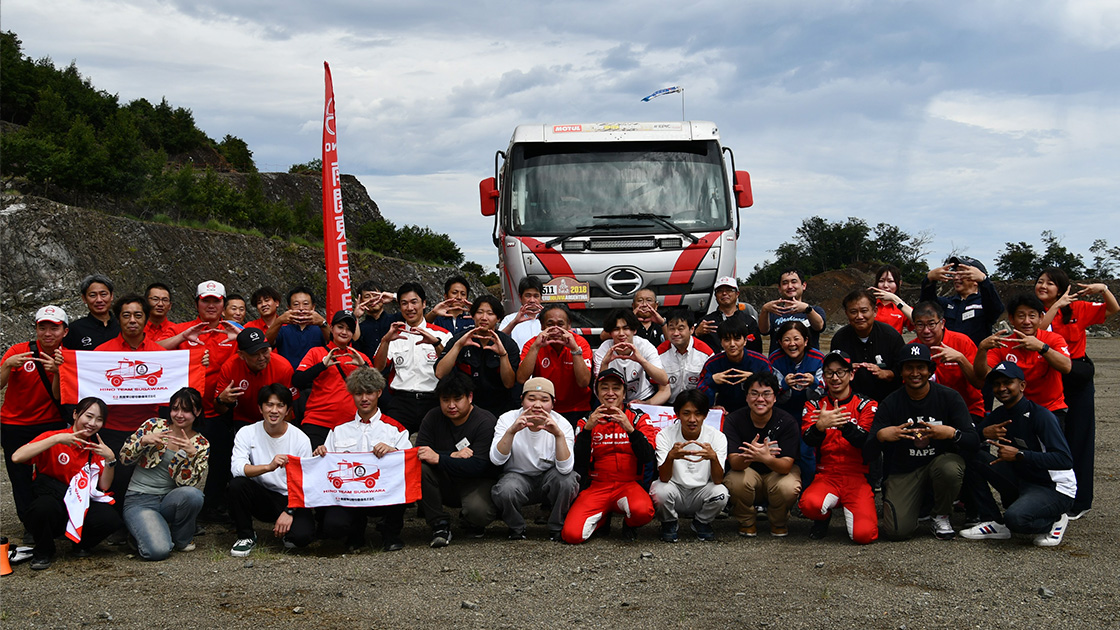 当日は、日野ダカール車による迫力あるオフロード走行を体験していただき、参加者の皆様にはその高い走行性能と魅力を間近で感じていただく機会となりました。併せて、車両展示や写真撮影会も実施し、日野レーシングトラックの魅力をより身近に感じていただける内容となりました。