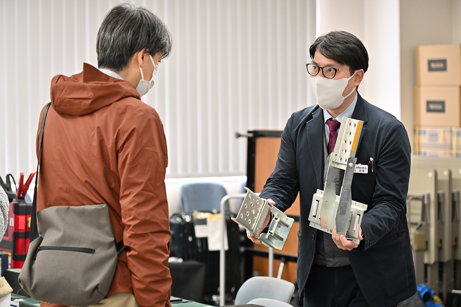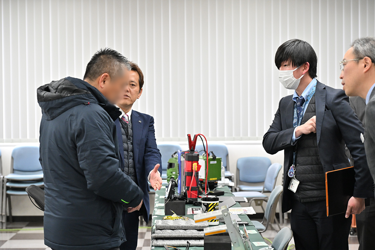 会場内には居眠り運転警告システムやトラックボードなどの展示・体験コーナーも併設し、講習終了後には多くのお客様から熱心なご質問をいただきました。